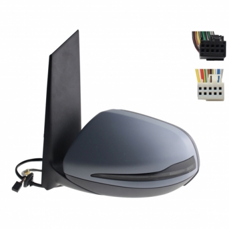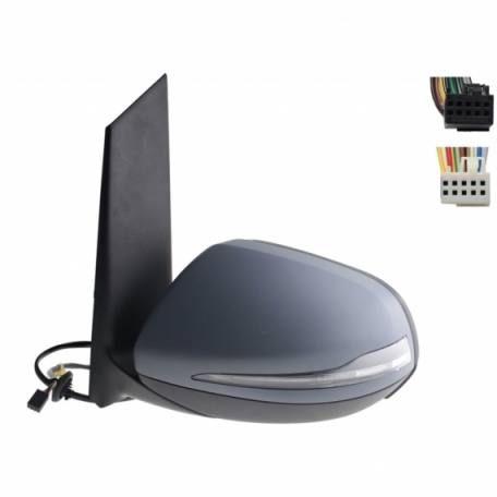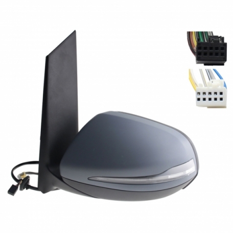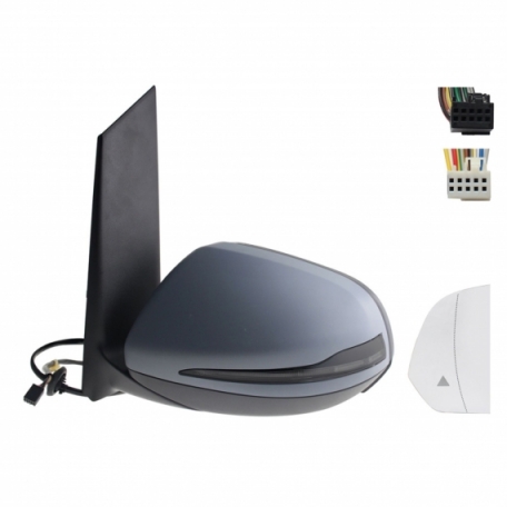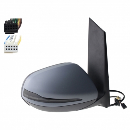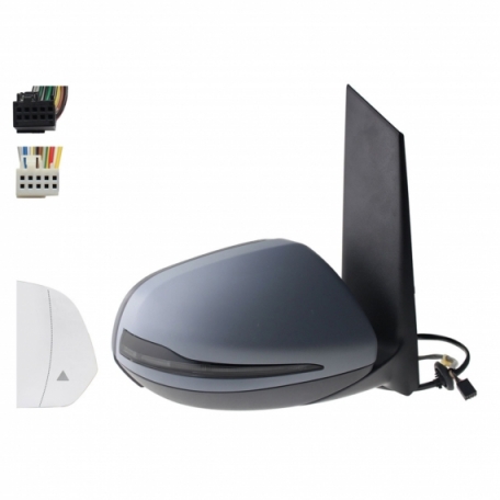 Rétroviseur électrique droit, asphérique, chauffant, apprêté, rabattable, avec feu clignotant, courtoisie, mémoire, noir (10 et 10 broches)