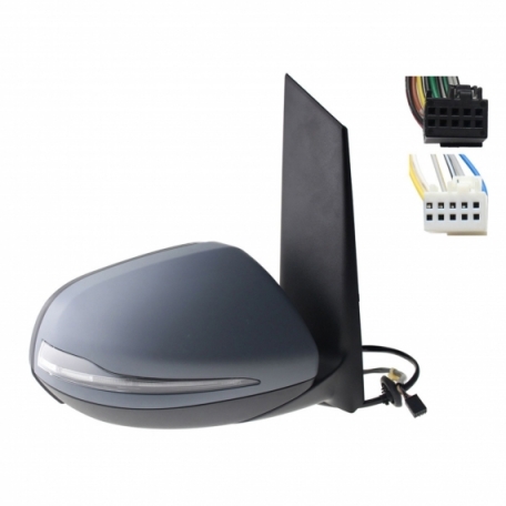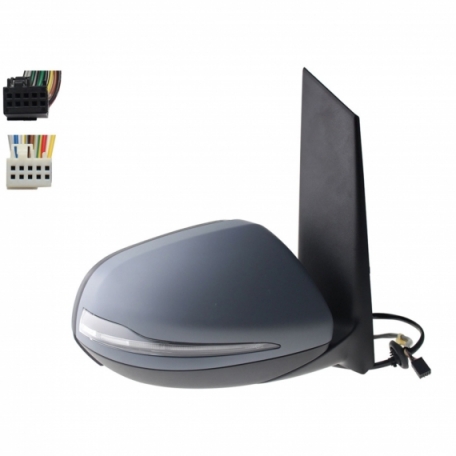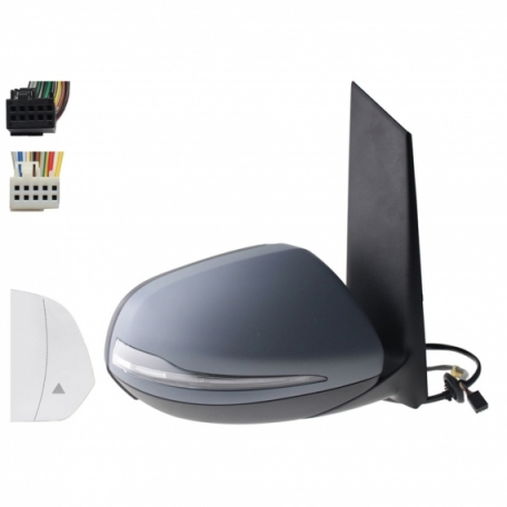 Rétroviseur électrique gauche, asphérique, chauffant, apprêté, rabattable, avec feu clignotant, courtoisie, mémoire, noir, side (10 et 10 broches)