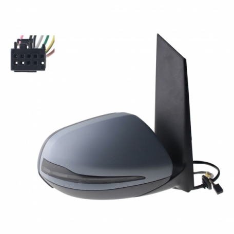 Rétroviseur électrique gauche, asphérique, chauffant, apprêté, rabattable, avec feu clignotant, courtoisie, noir, side (6 et 10 broches)
